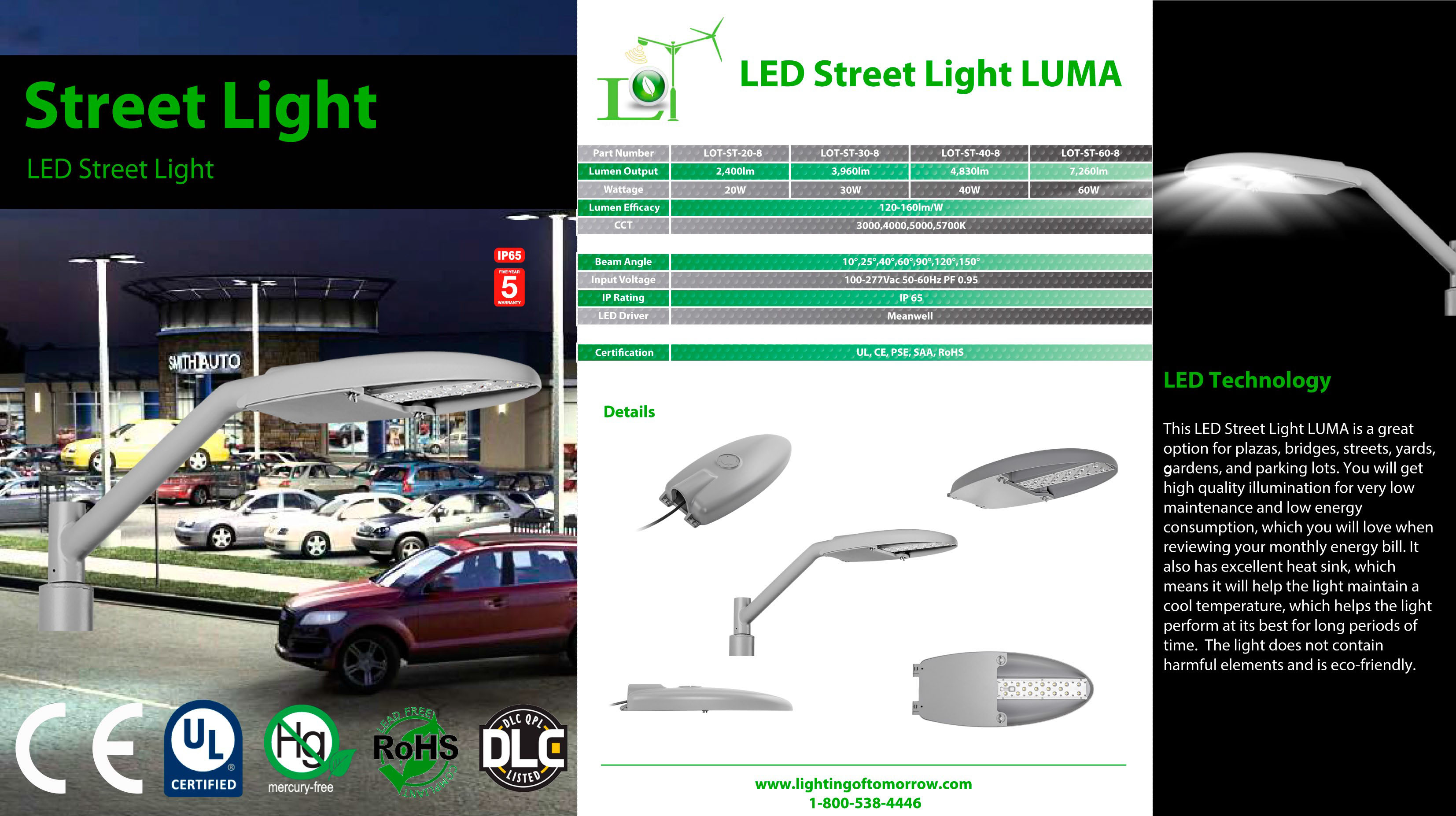 This LED Street Light LUMA is a great option for plazas, bridges, streets, yards, gardens, and parking lots. You will get high quality illumination for very low maintenance and low energy consumption, which you will love when reviewing your monthly energy bill. It also has excellent heat sink, which means it will help the light maintain a cool temperature, which helps the light perform at its best for long periods of time. The light does not contain harmful elements and is eco-friendly.